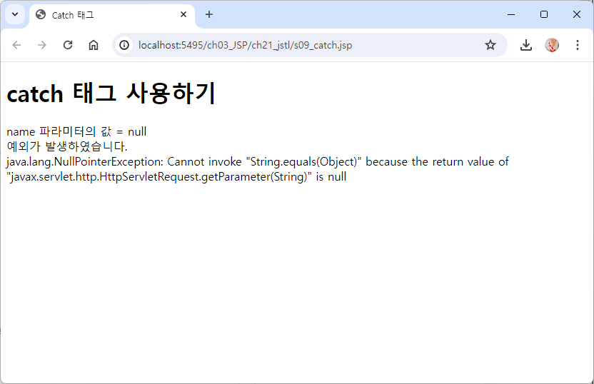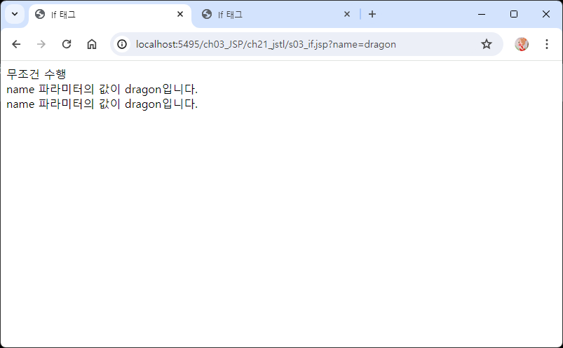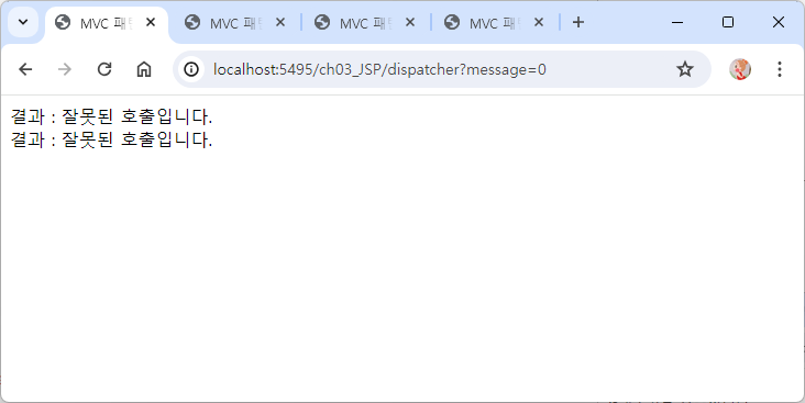 ?message=0 주소에 추가하여 실행했을 때 else의 잘못된 호출입니다 출력