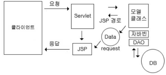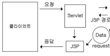 client가 서블릿에 요청하고 -> JSP를 forward해서 -> client에게 응답한다