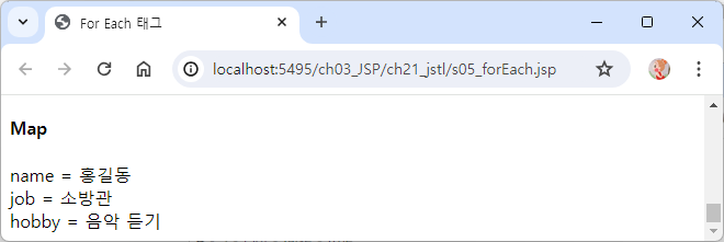 | requestScope | request 기본 객체에 저장된 속성의 <속성,값> 매핑을 저장한 Map 객체 |