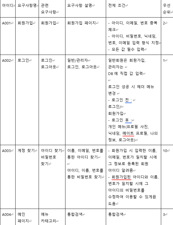 요구 사항 정의서 작성 완료함