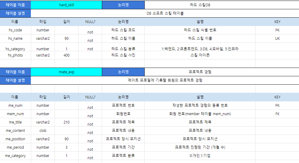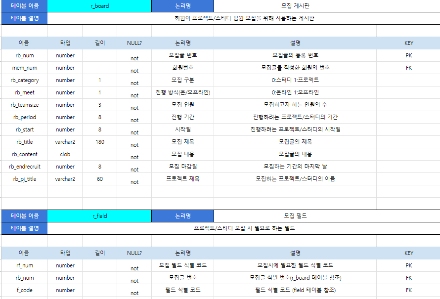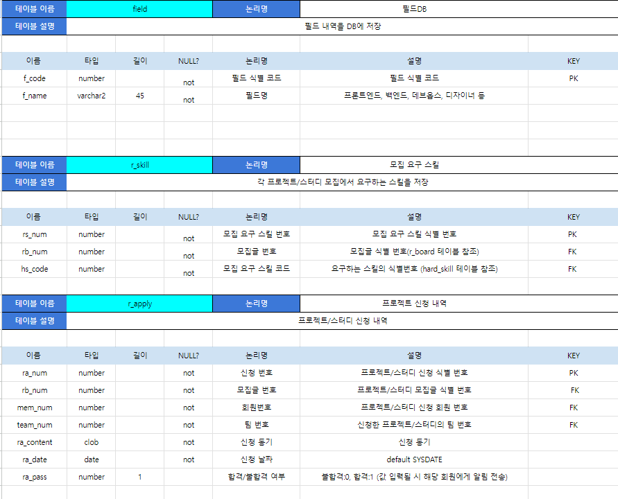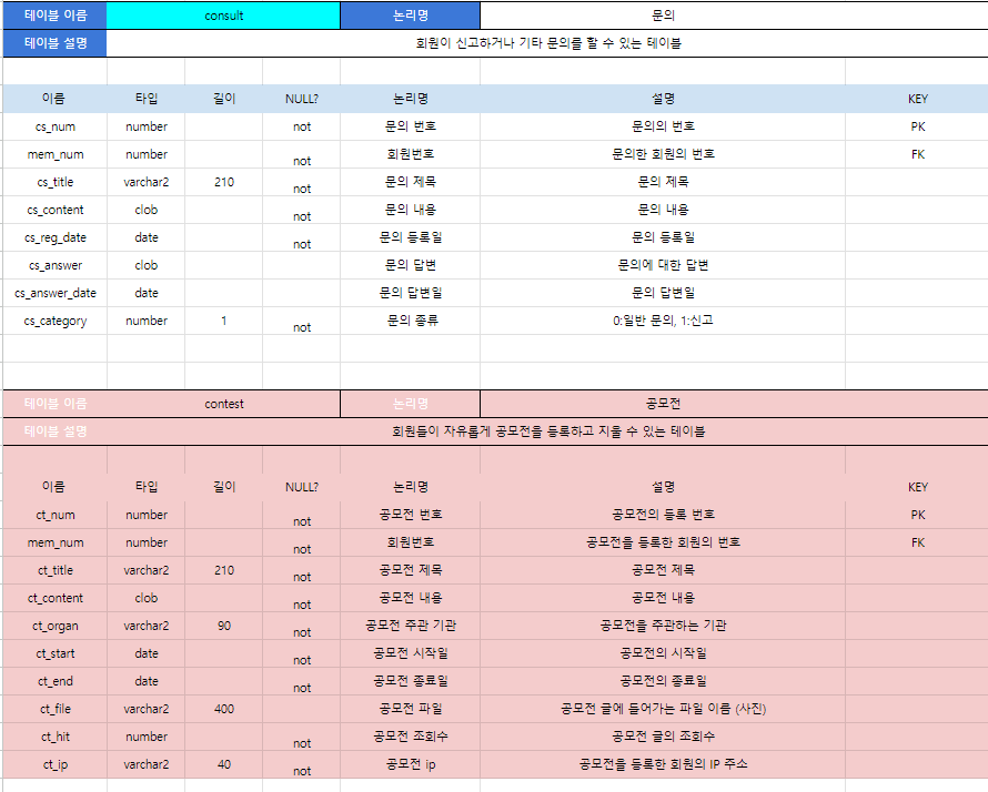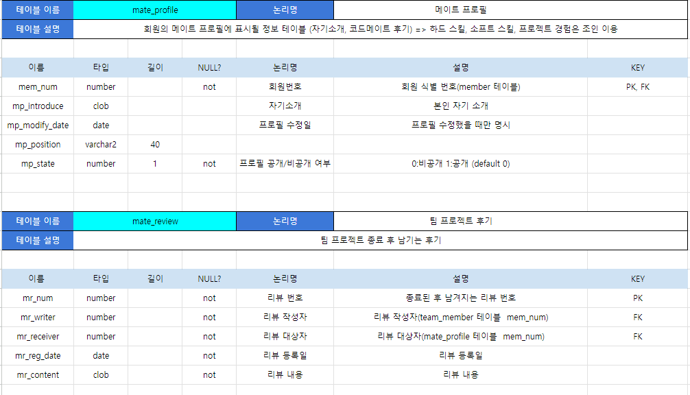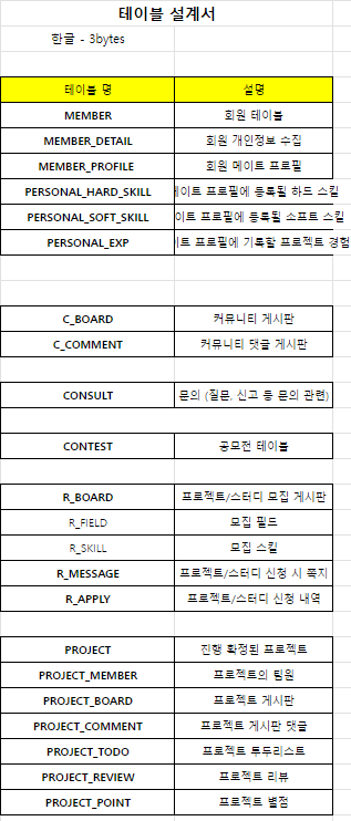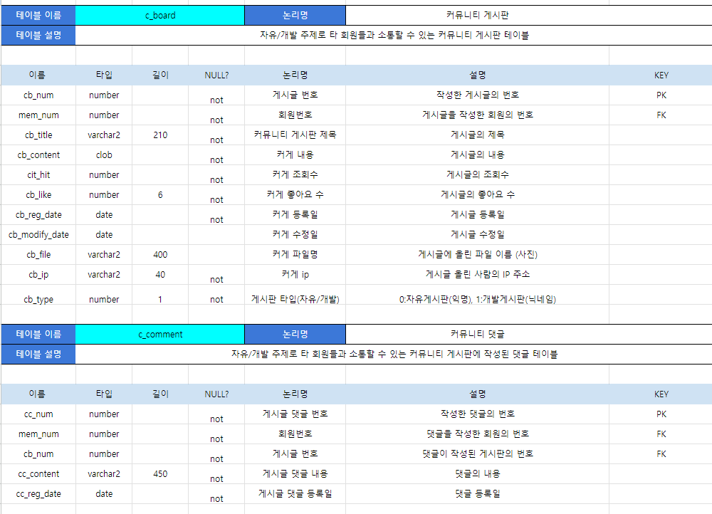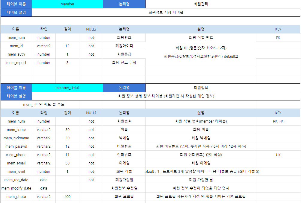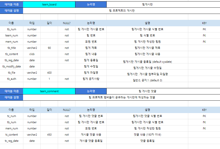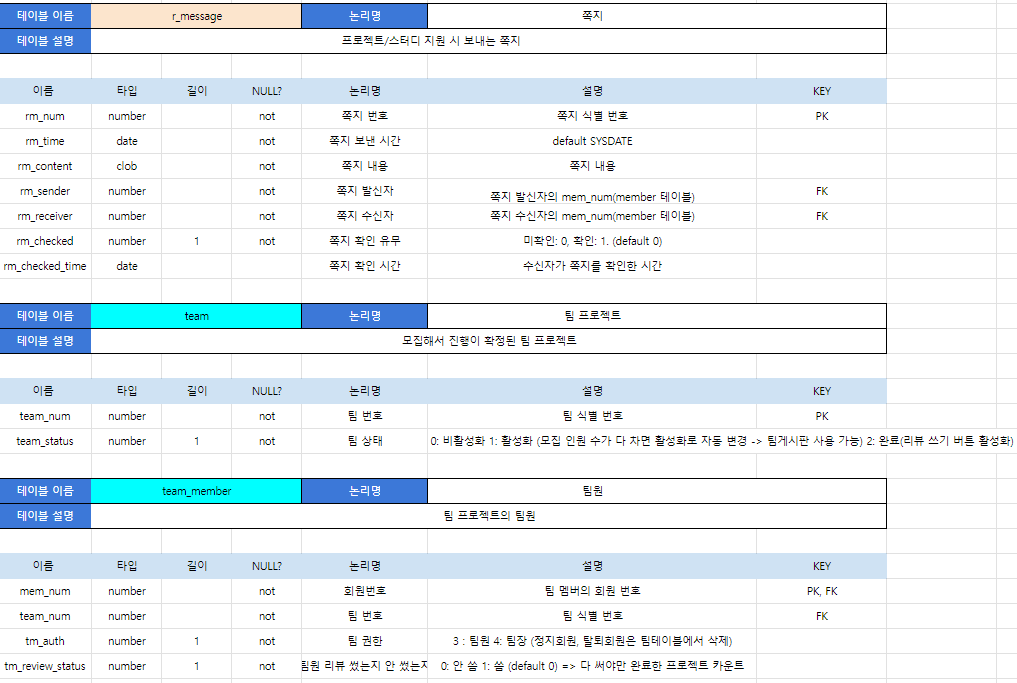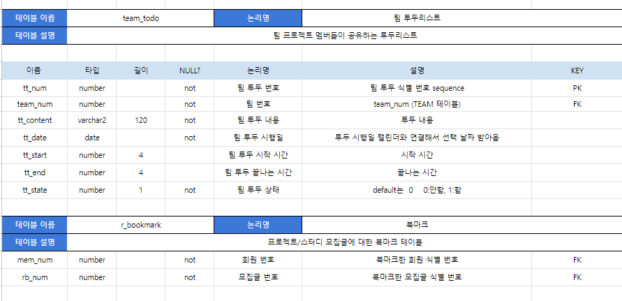 테이블 설계서 작성 완료, ERD Cloud 이용해서 작성 완료