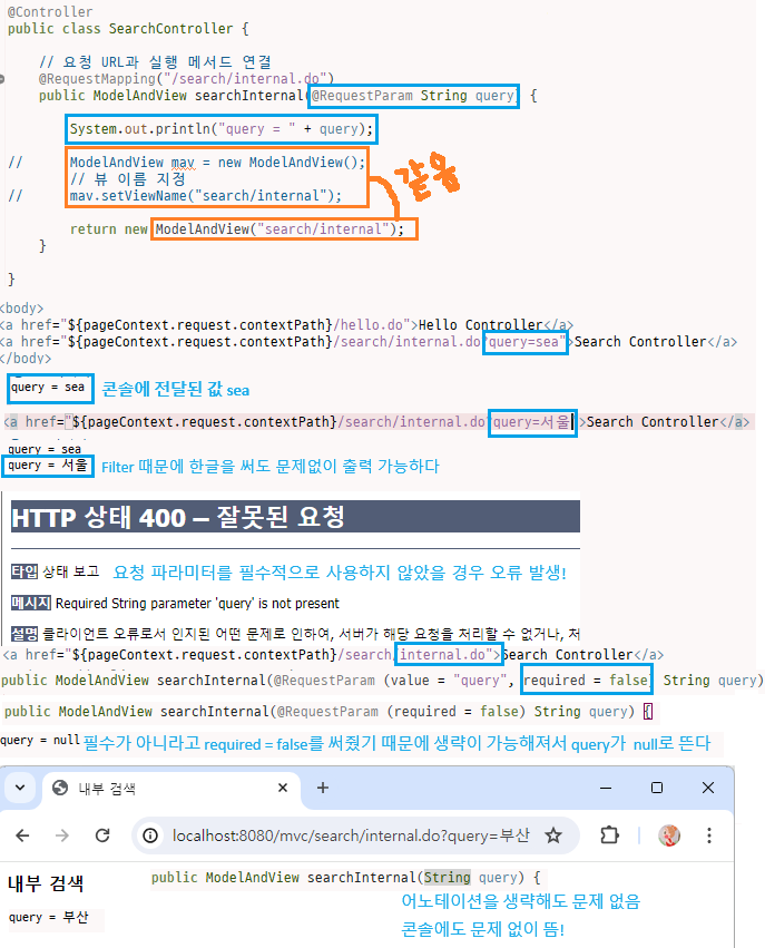 | ModelAndView | 컨트롤러가 처리한 결과 정보 및 뷰 선택에 필요한 정보를 담는다. |