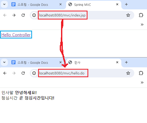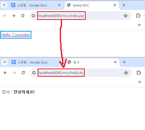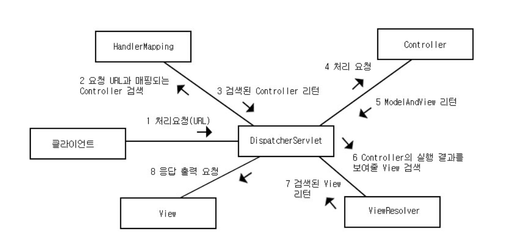 | 컨트롤러(Controller) | 클라이언트의 요청을 처리한 뒤, 그 결과를 DispatcherServlet에 알려준다. 스트럿츠의 Action과 동일한 역할을 수행한다. |