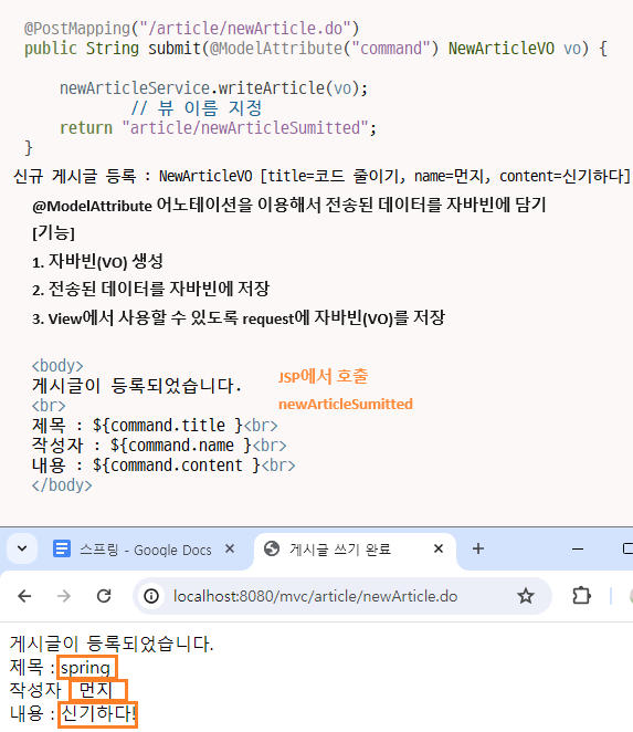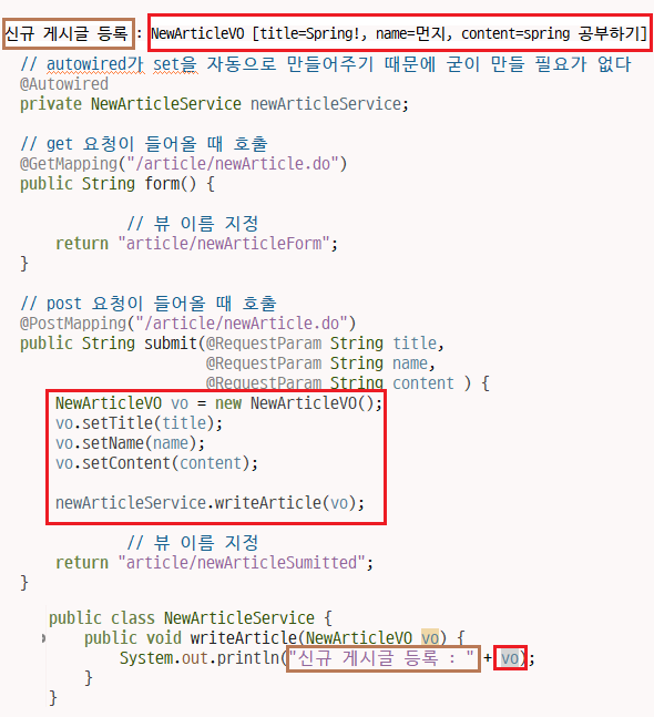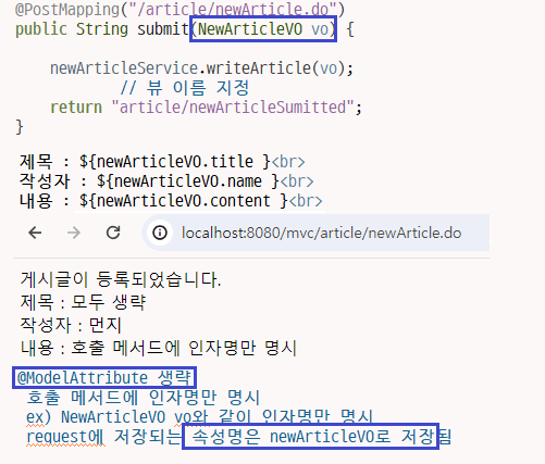 ex) NewArticleVO vo와 같이 인자명만 명시