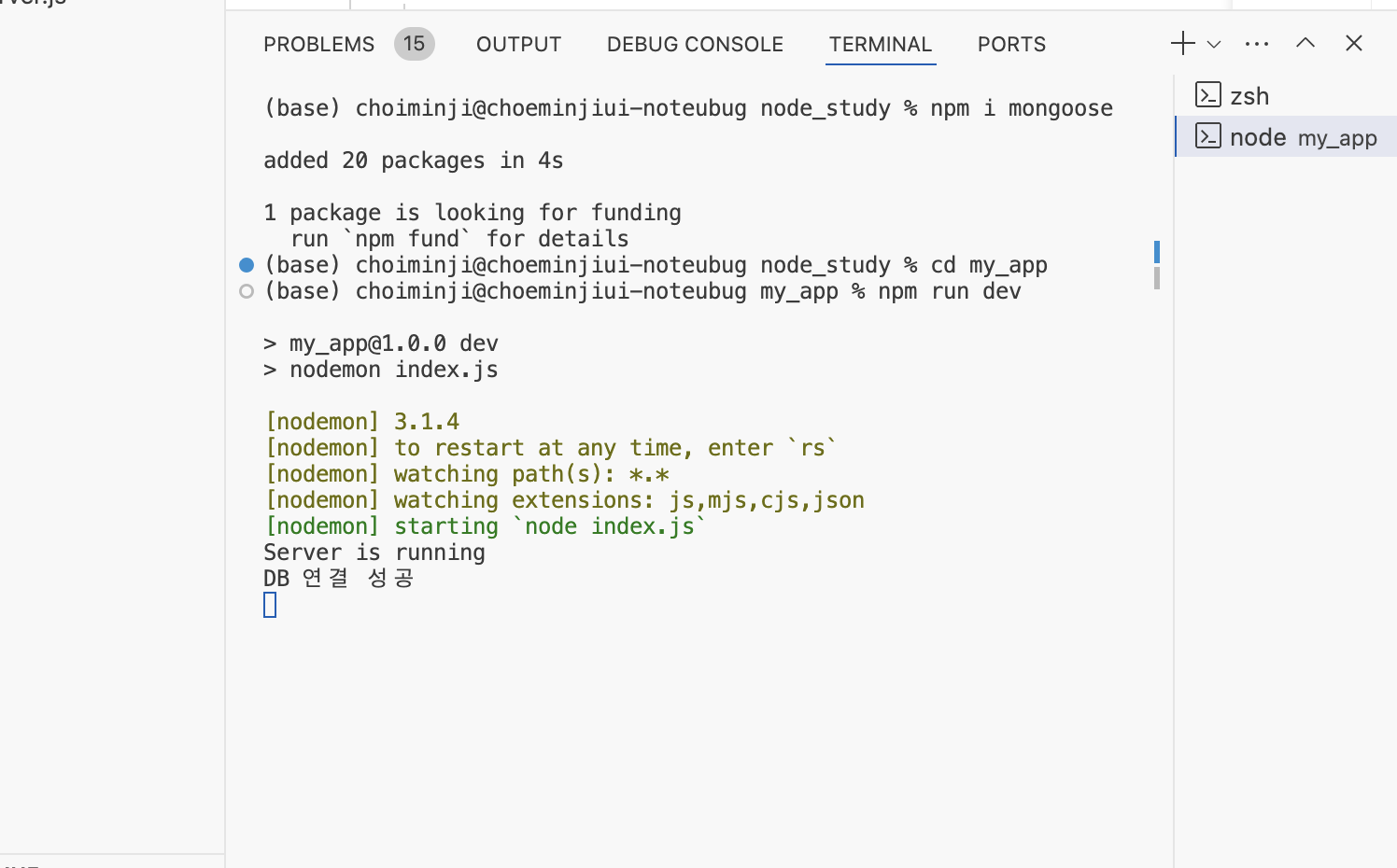 2. 내가 사용할 DB 지정 $ use express하면 생성하면서 지정된다.