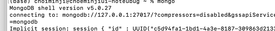 --> mongo 를 입력해 접속하면 mongoDB가 내 서버에서 어떤 포트에 설치되어있는지 알수 있다.