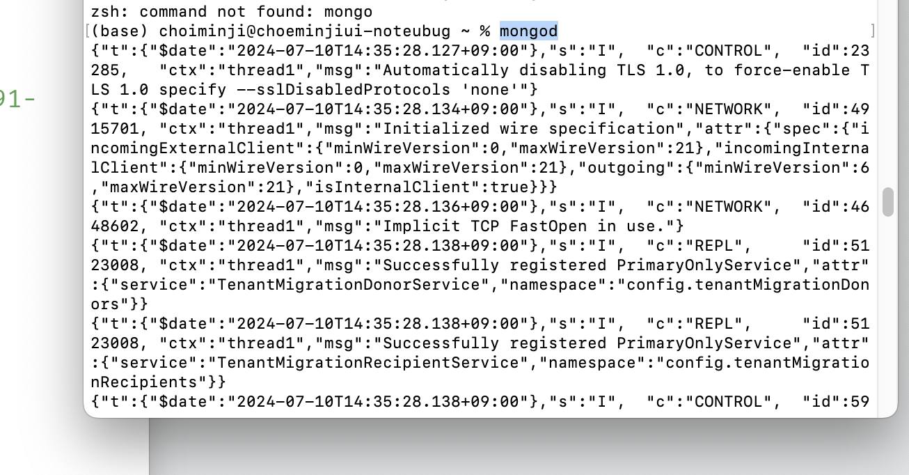 이렇게 쉘을 다운로드 해주면 $ mongo가 문제없이 실행될것이다.