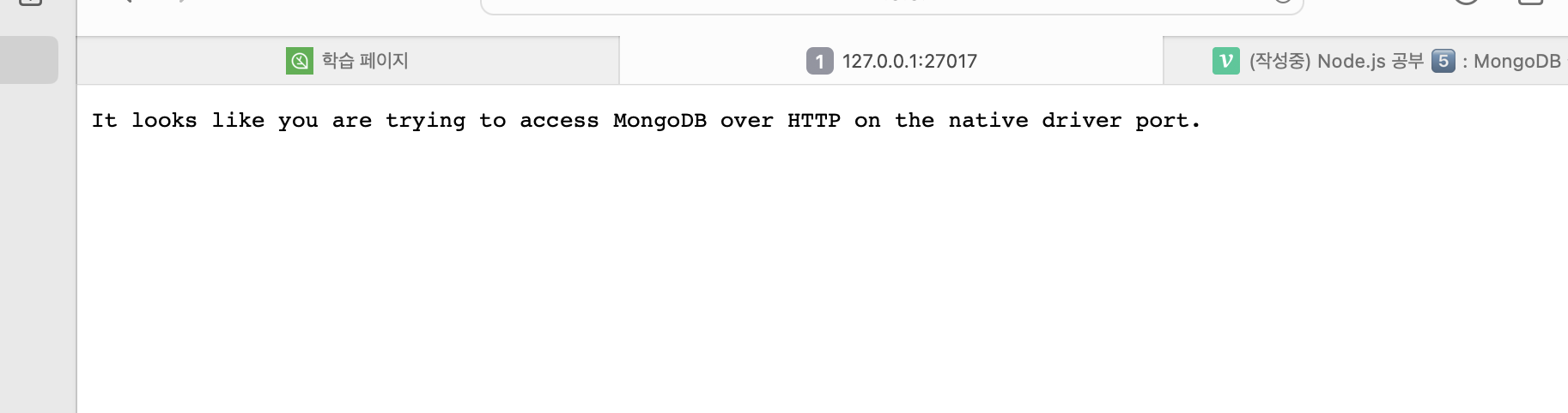 그래서 웹에 접속해 127.0.0.1:27017 을 들어가면