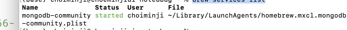 mongoDB 실행되고 있는지 확인 $ brew services list