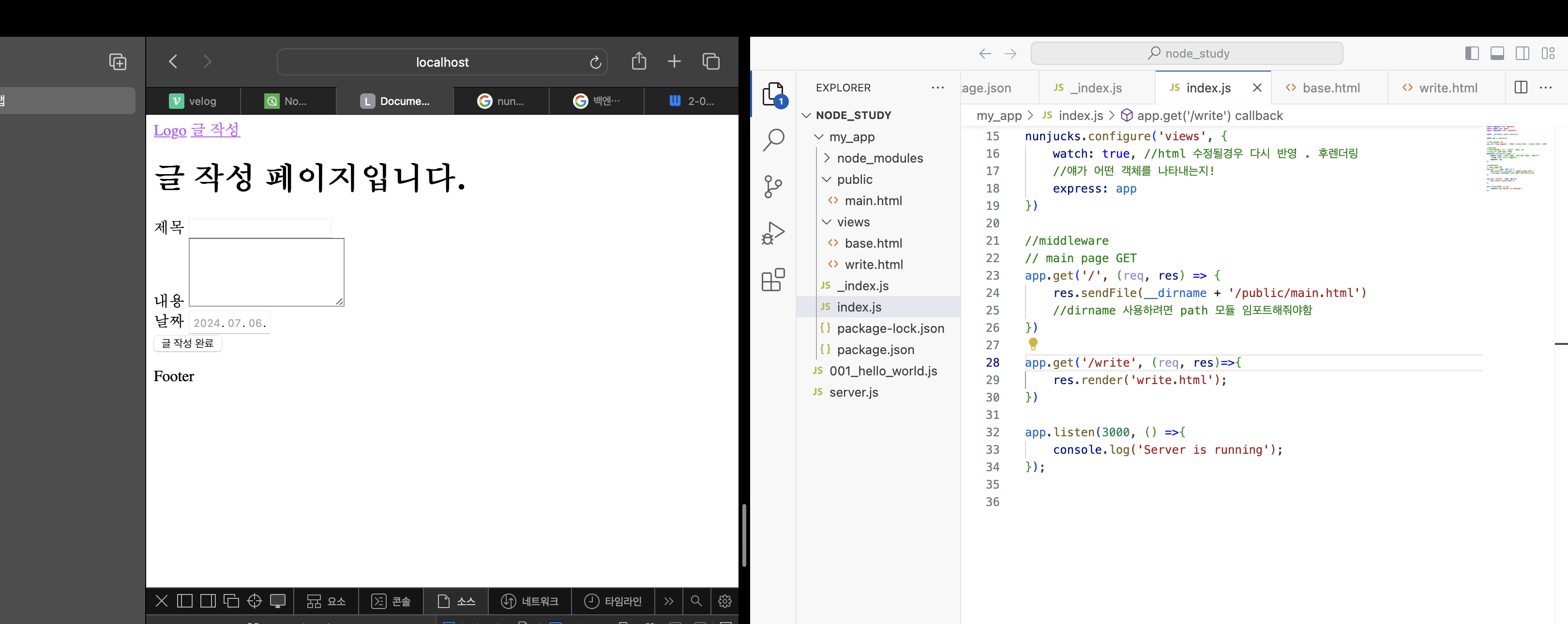 html 파일로 base.html 과 write.html 을 만들어 주었다.