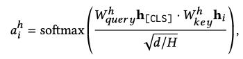 - scaled-dot attention 공식이라고 이해하면 쉽다! query가 CLS 인 것이고, content를 key 라고 보면 된다.