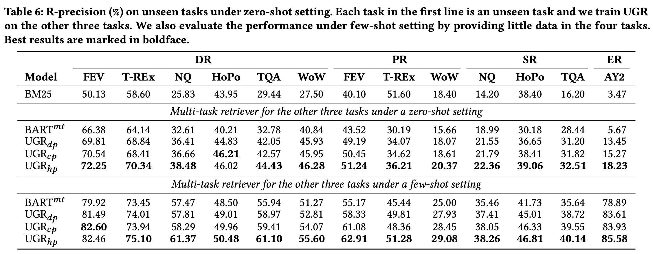 - unified generative retriever (UGR) : different retrieval tasks를 다 풀 수 있도록 한다.