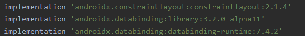 저의 경우에는 implementation에서 추가 하다가 위에같이 databinding이 두 가지 들어가면서 오류가 났었어요. 위의 databinding:library를 지우면서 오류를 해결되었습니다~~!!