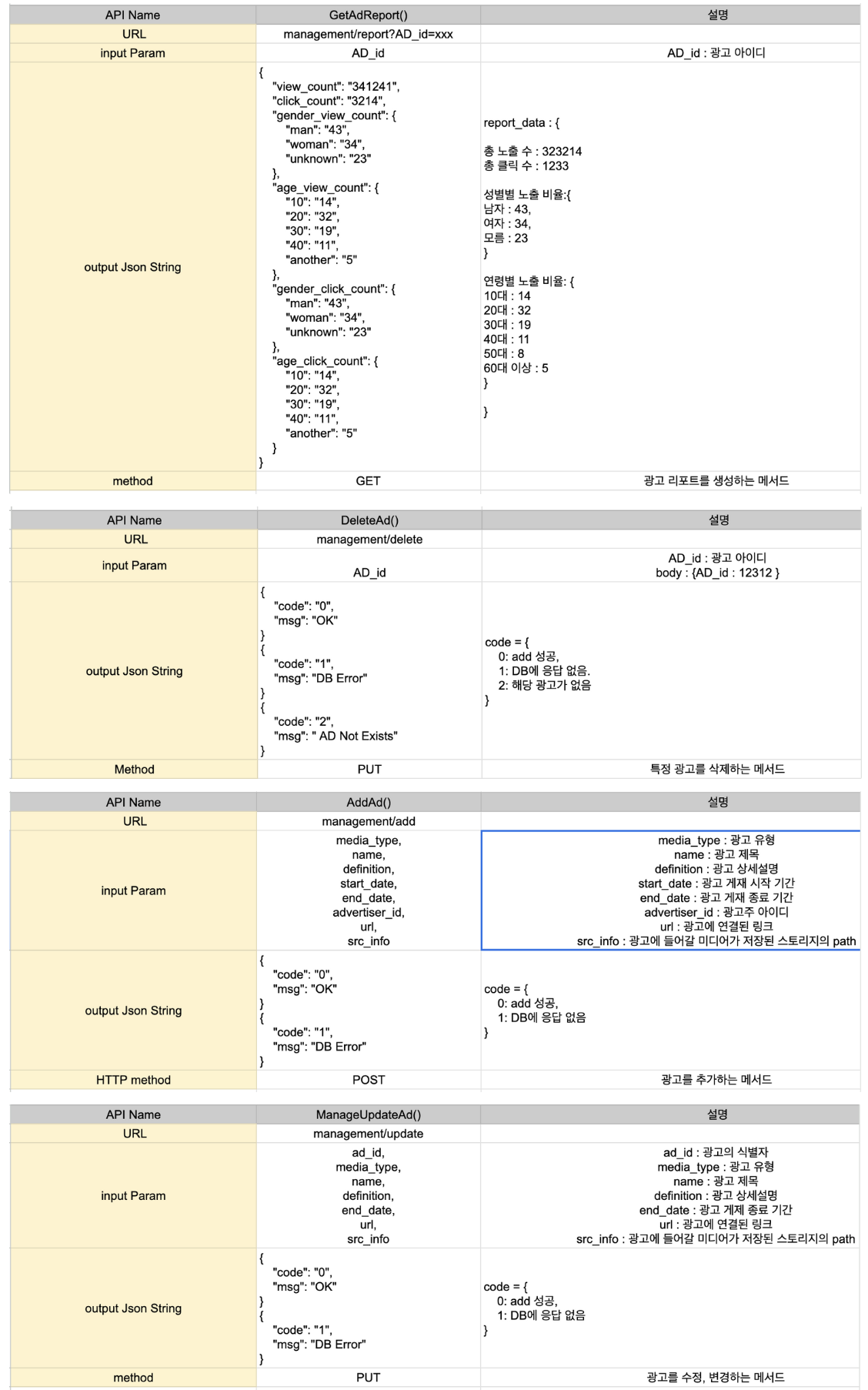 개발이 진행되기 전에 이문서가 나왔으면 서버에 요청하면 이런게 나와야 한다.