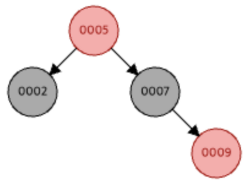 예를들면 다음과 같은 트리는 RB 트리에서는 가능하지만 AVL Tree에서는 불가능하다.