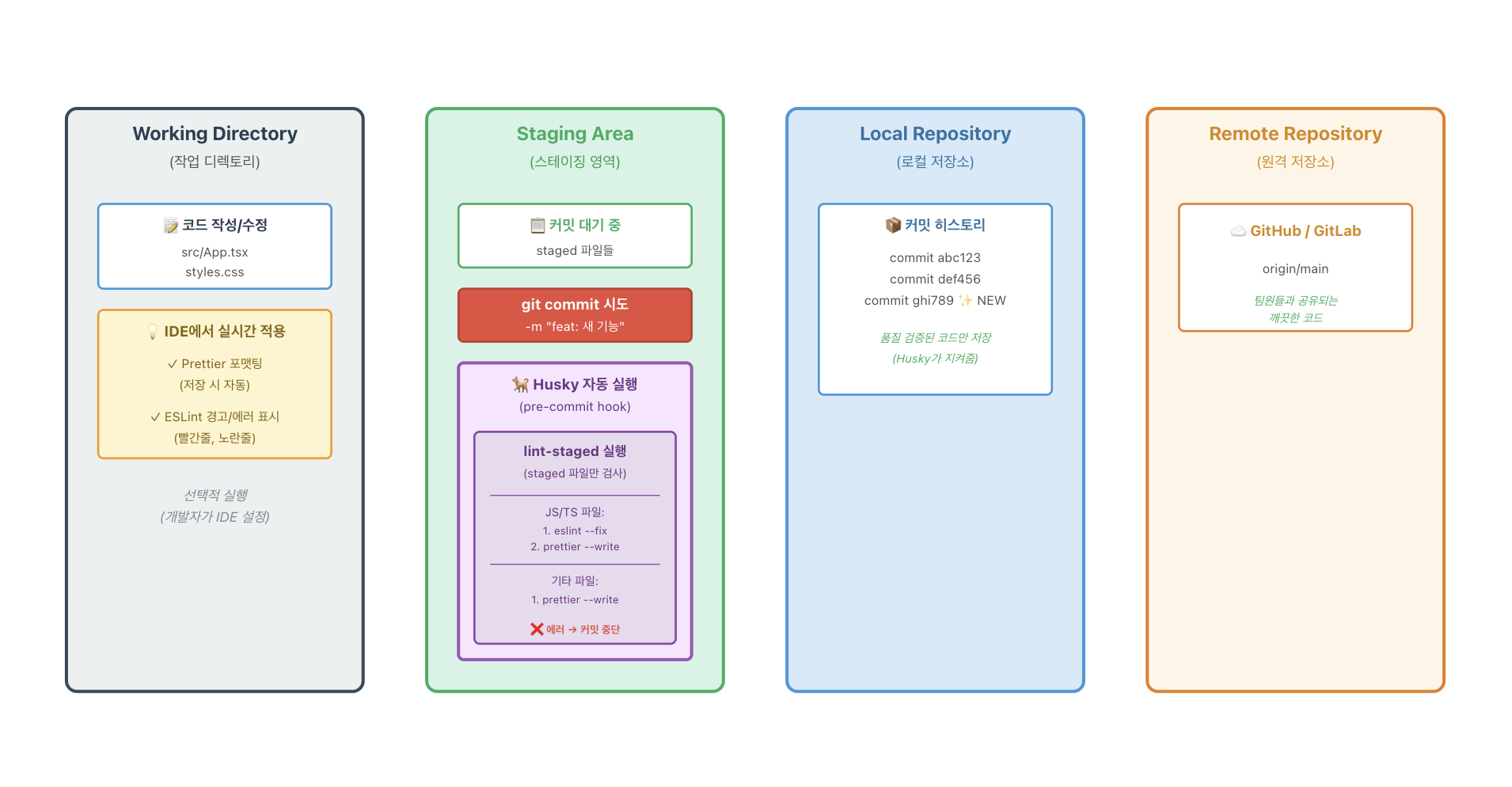 이제 git commit을 실행할 때마다 자동으로 코드 포맷팅과 린트 검사가 실행되어, 문제가 있는 코드는 커밋되지 않습니다.