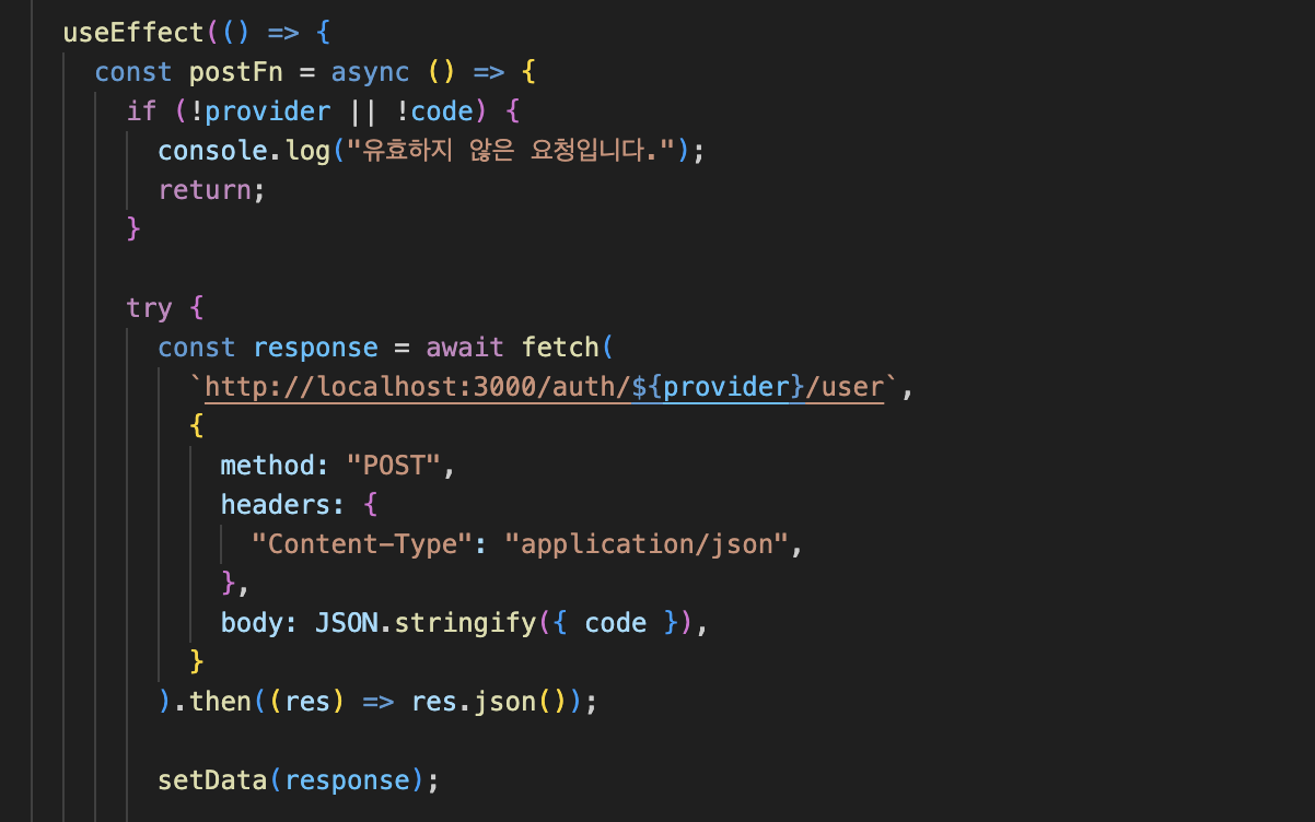 전달받은 string 값을 통해 3000/kakao/login이라는 서버 주소로 이동하게 된다.