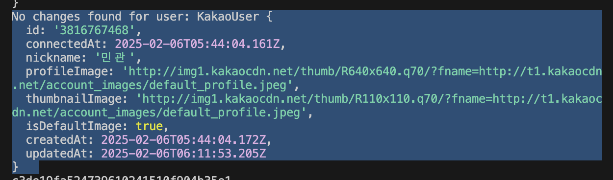 최종적으로는 existingUser를 반환하게 된다. 해당 값은 5173/redirect?provider=kakao의 response 값이 된다. 즉 frontend에서 사용자 정보를 활용할 수 있는 상태가 되었다.