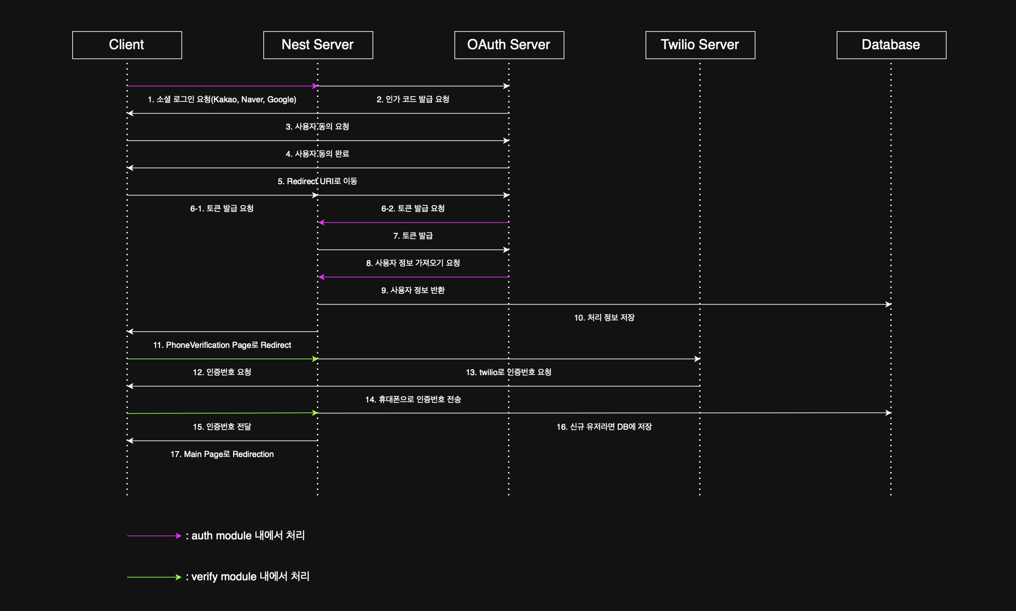 만약 카카오로 이미 가입한 유저가 네이버로 가입하려고 하면, 동일 인물에 대해 계정이 두 개가 생긴다. 휴대전화 번호로 SMS 문자 인증을 보내, 기존 가입자인지를 판단하고, 다른 Provider로 계정을 추가 생성하는 것을 막기 위해 twilio 서비스를 이용할 예정이다.