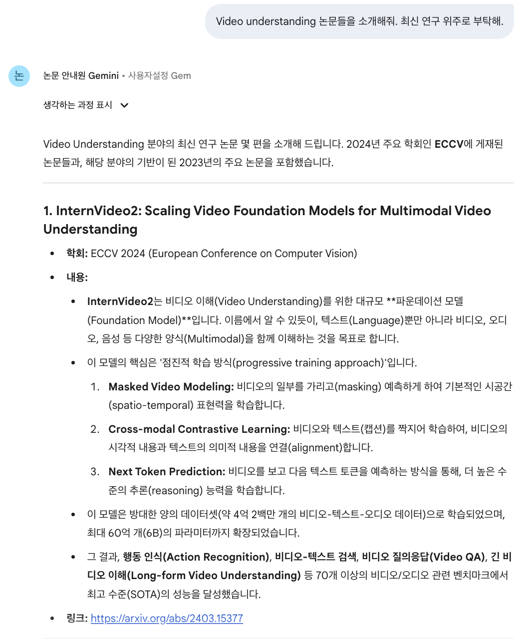 논문은 arxiv 링크와 같이 웹페이지 링크를 첨부해도 되지만, 그러면 Gemini가 읽지 못하는 경우가 종종 발생하기 때문에 가급적이면 pdf 파일로 첨부해주는 것을 추천드립니다.