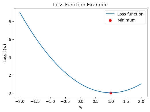 | L(w) | 손실 함수(loss function) | 모델 성능을 수치화, w에 따라 값이 달라짐 |