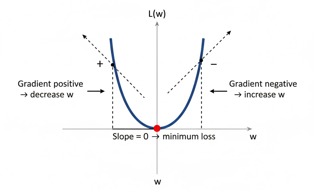 이때 손실을 줄이는 방향을 찾기 위해 사용하는 핵심 도구가 경사하강법(Gradient Descent)이며,