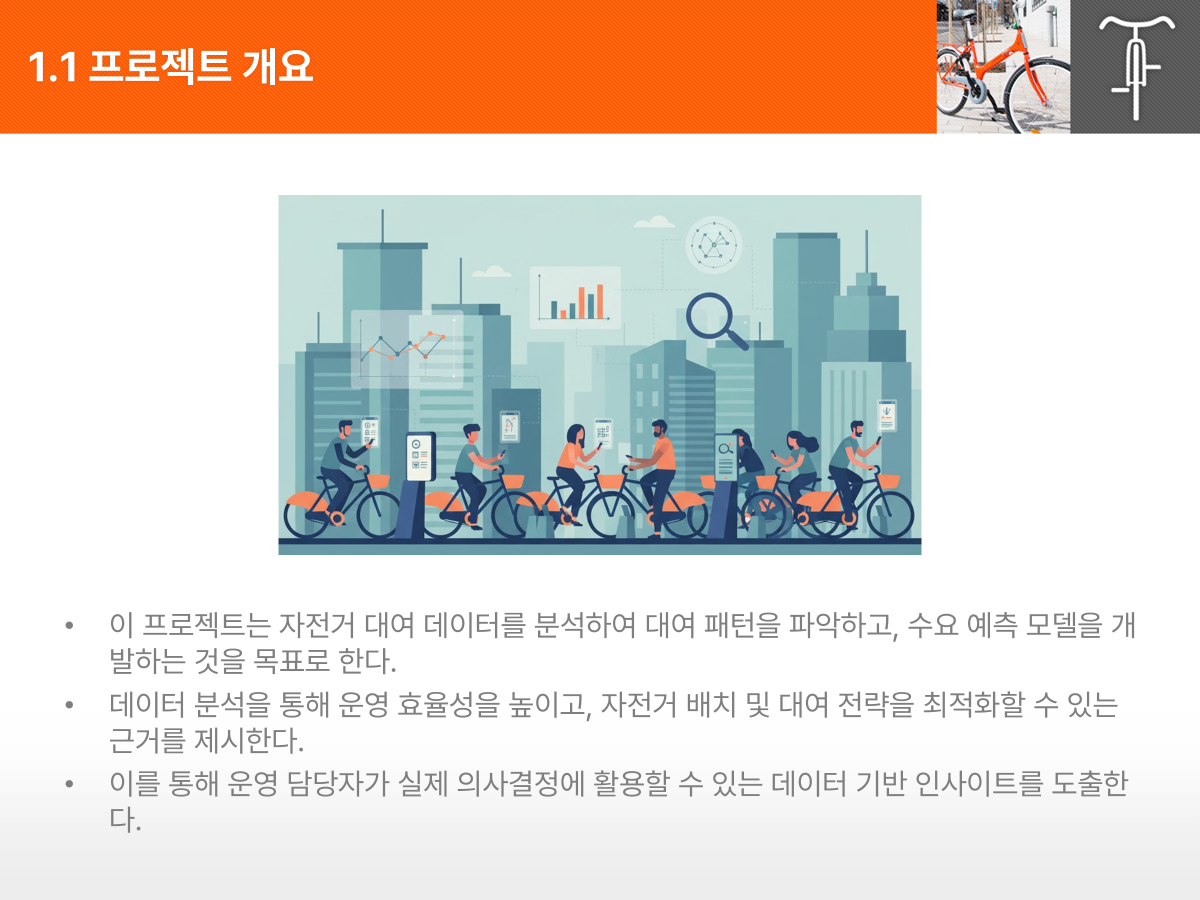 주피터 노트북으로 실습한 자전거 수요 분석 및 배치 전략을 시각화 보고서로 작성하였다.
