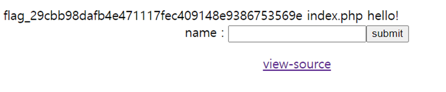 이때 사이트의 URL을 확인해보면 http://webhacking.kr:10005/index.php로 Index.php파일은 현재 실행되는 name입력창이 있는 파일임을 알 수 있다. 그러므로 URL에서 index.php부분을 지우고 flag_29cbb98dafb4e471117fec409148e9386753569e 을 넣어서 해당 파일의 URL주소http://webhacking.kr:10005/flag_29cbb98dafb4e471117fec409148e9386753569e로 이동해보면