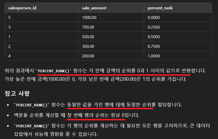 PERCENT_RANK() 함수가 이것까지 고려해주네요... 스고이 👍