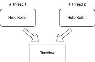 동시에 두 스레드가 TextView에 접근하면 어떤 결과가 나올지 보장하기 힘들다. 따라서 동작의 무결성을 보장하기 위해 메인 스레드 이외의 스레드(Worker Thread) 는 UI 관련 동작을 수행할 수 없고, 오로지 메인 쓰레드에서만 UI 관련 동작을 할 수 있도록 정해져있다.