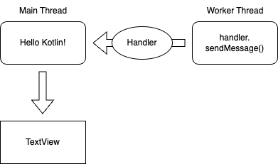 아래 그림과 같이 워커 스레드에서 작업을 수행한 후 Handler를 통해 메인 스레드로 전달한다.