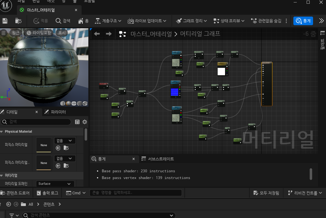 러프니스, 메탈릭, 오파시티, 스펙큘러, 색상강도, 틴트 등등 후보정과 타일링 수정을 할 수 있는 마스터 머티리얼이다.