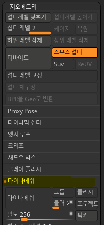 하이폴 상태입니다. 스컬핑 할 때에는 항상 다이나메쉬를 켜둔 상태로 작업하셔야 합니다.