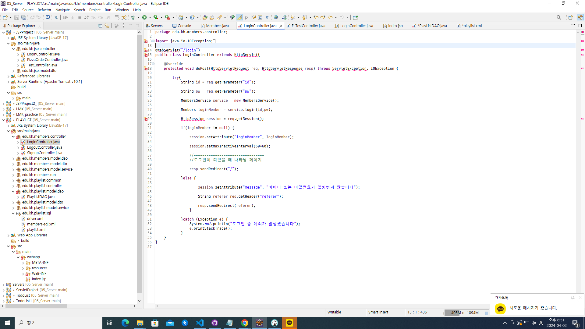 학원에서 컴퓨터 자리를 변경하면서 이전에 만들어놨던 프로젝트를 깃에서 내려받아서 열려고 했더니
