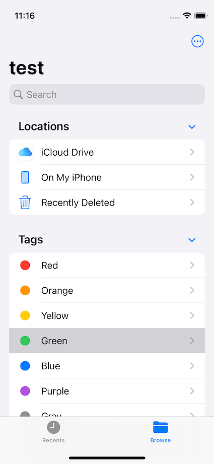 UISupportsDocumentBrowser를 YES로 설정하거나 UIFileSharingEnabled와 LSSupportsOpeningDocumentsInPlace 값을 설정한 앱에 한하여 볼 수 있다.다른 앱에서 앱의 Document 폴더에 저장된 파일을 열고 편집할 수 있도록 하려면 이 키를 YES로 설정합니다. 또한 이 키를 사용하면 설정에서 앱의 기본 저장 위치를 설정할 수 있습니다.