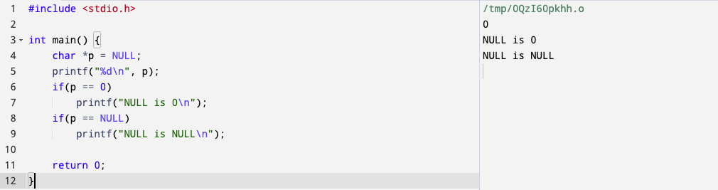 은 0인 주소값을 의미합니다. 따라서 NULL