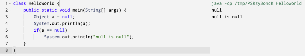 에 구체적인 값을 요구하지 않는다고 합니다. null이 어떤 값을 가지는지 모르고, 자바는 비교 시 타입 체크에 매우 엄격하므로 C처럼 특정 값과 null을 비교할 수 없습니다.