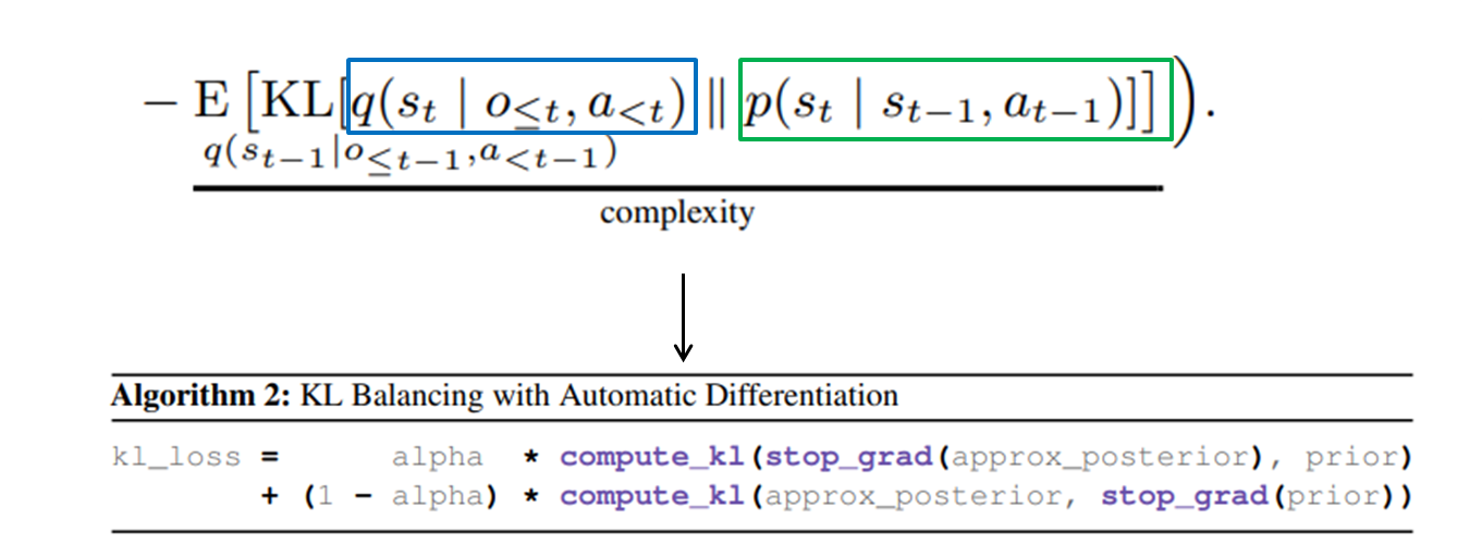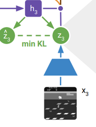 목적: 사전 확률(p)가 정답에 가까운 사후 확률(q)과 같아지도록 차이를 줄여서, 잠재 공간에서 한 단계 앞을 예측하는 동역학 예측력을 학습한다.