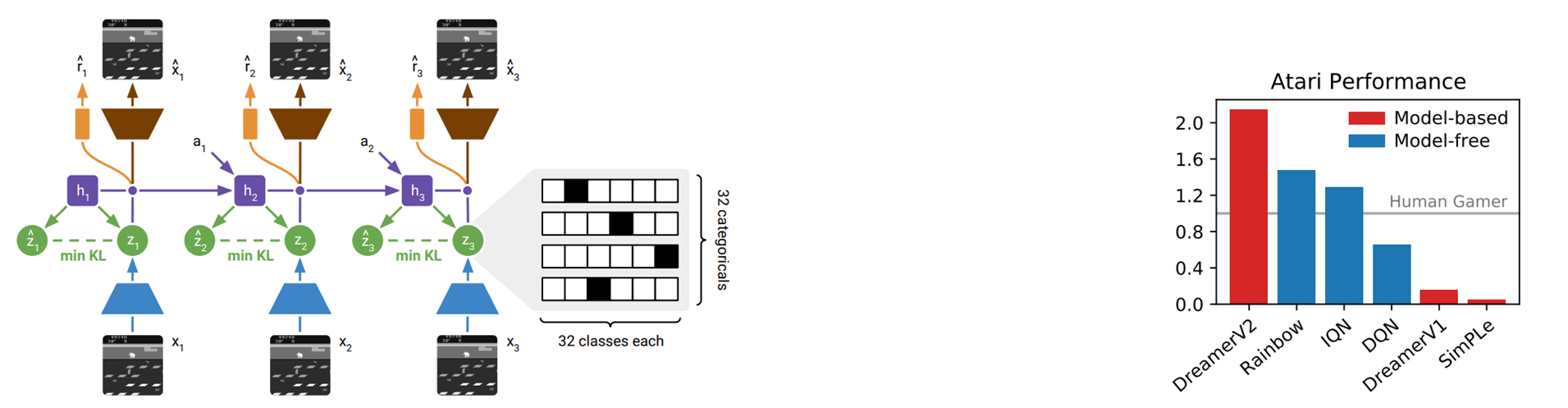 앞선 Dreamer를 발전시킨 모델로 "MASTERING ATARI WITH DISCRETE WORLD MODELS" 이란 논문에서 등장하였다.