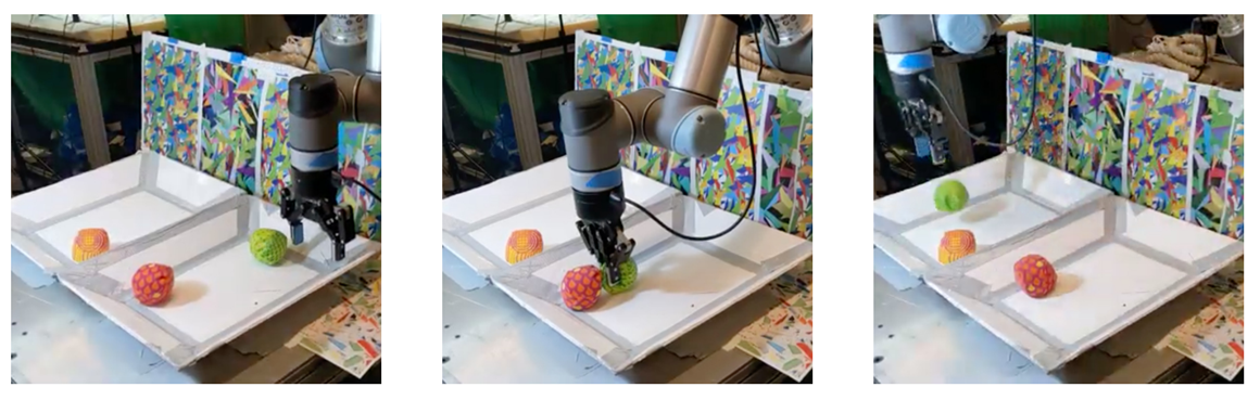 시간이 지남에 따라 잡기 동작이 정밀해지고 로봇은 구석에 있는 물체를 밀어내는 법을 배웠다.