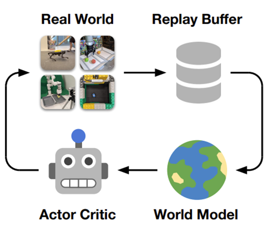 월드모델 학습 -> 데이터수집 -> 월드모델 학습의 반복으로 전개된다.