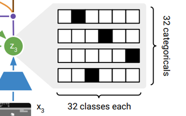 월드 모델에서 가우시안 잠재 상태 대신, 범주형 잠재 상태를 사용하였다.