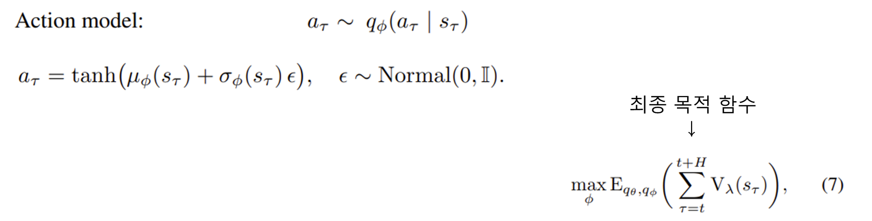 앞선 RSSM 학습 방법으로 𝜃를 업데이트한다.