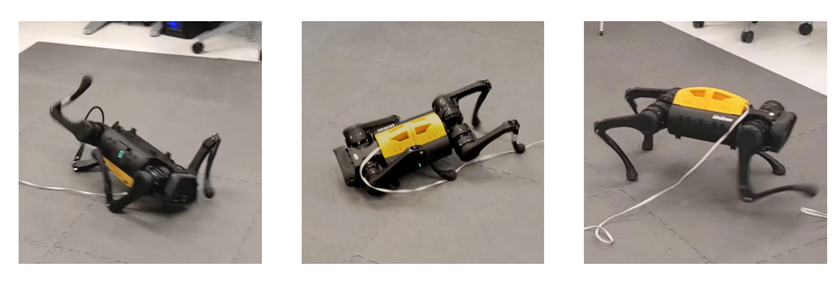 훈련 1시간 이후, 로봇을 밀기 시작했고 그 결과 10분 이내에 행동을 수정하여 가벼운 밀림은 견뎌내고 강한 밀림에는 빠르게 뒤집어 일어나는 것을 확인하였다.