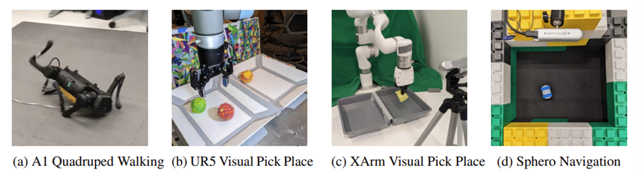 보행, 조작(manipulation), 내비게이션과 같은 일반적인 로봇 공학 작업들을 대표하는 4대의 로봇에서 평가를 진행하였다.