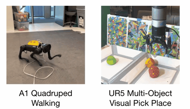로봇팔 뿐 아니라 4개의 다리를 조정하는 로봇, 바퀴를 조정하는 로봇 등 다양한 로봇에도 적용하였다.