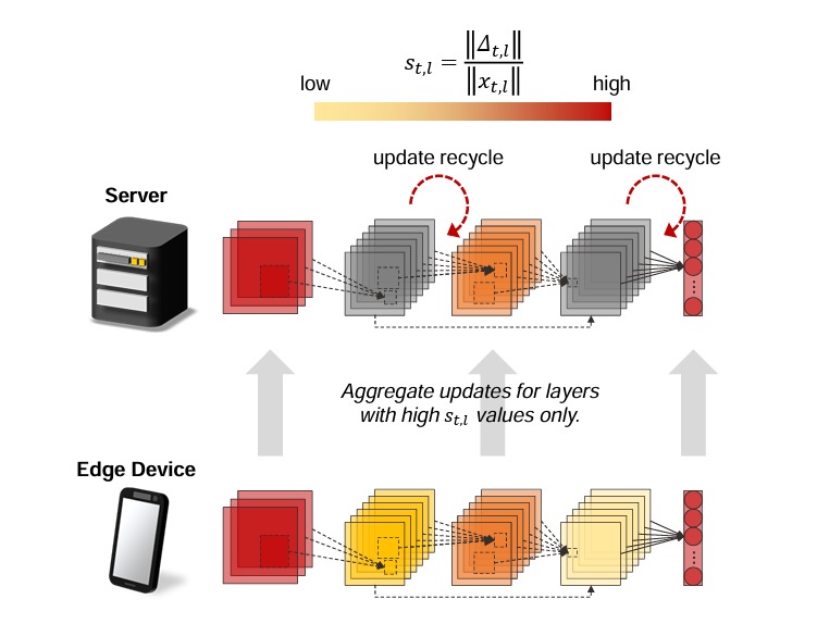 LAYER-WISE UPDATE AGGREGATION WITH RECYCLING FOR COMMUNICATION-EFFICIENT FEDERATED LEARNING
