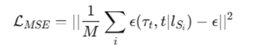 하여, 단일 구성요소만 주어졌을 때 노이즈를 예측하게 끔 훈련시키는 식은 다음과 같다.