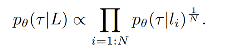 각 파싱된 언어 하위 구성 요소 {𝑖=1:𝑁}에 대해 개별 생성 모델들의 곱(product)으로 예측할 것을 제안한다.