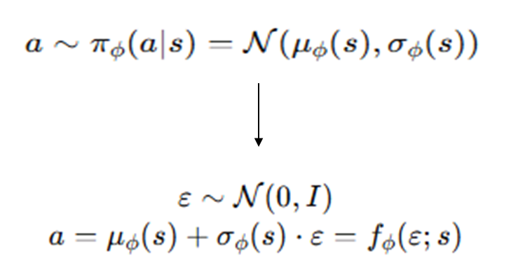 이를 해결하기위해 reparameterization trick 사용하여 a를 Ø에 대한 함수로 정의